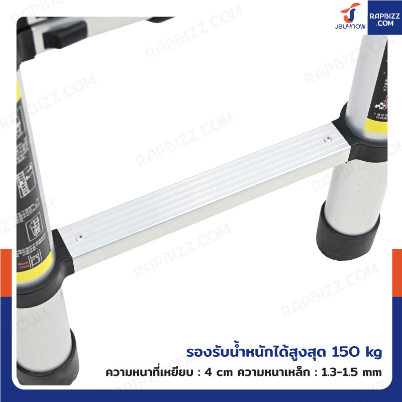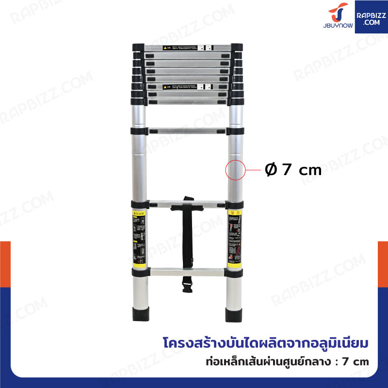 - โครงสร้างบันไดผลิตจากอะลูมิเนียม มีความแข็งแรงทนทานและกันสนิม