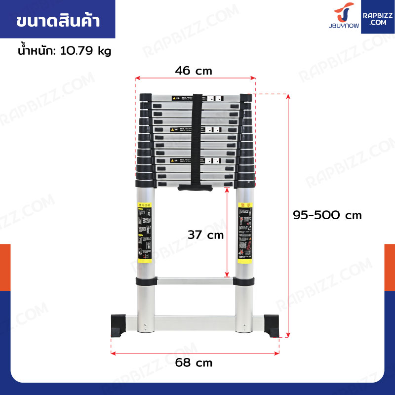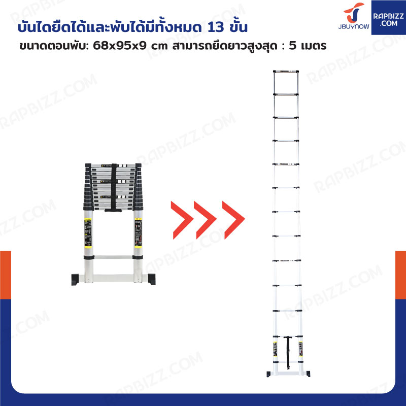 บันไดยืดหดได้ 5 เมตร บันได อลูมิเนียม พับได้ ยืดสไลด์ JBYNOW 6030