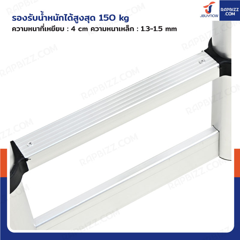 - โครงสร้างบันไดผลิตจากอะลูมิเนียม มีความแข็งแรงทนทานและกันสนิม