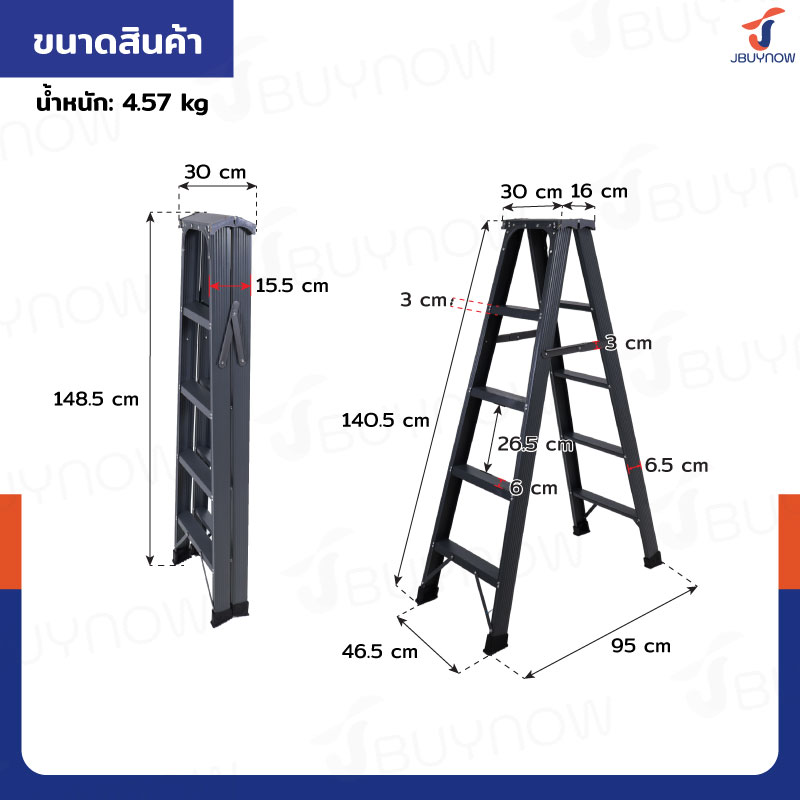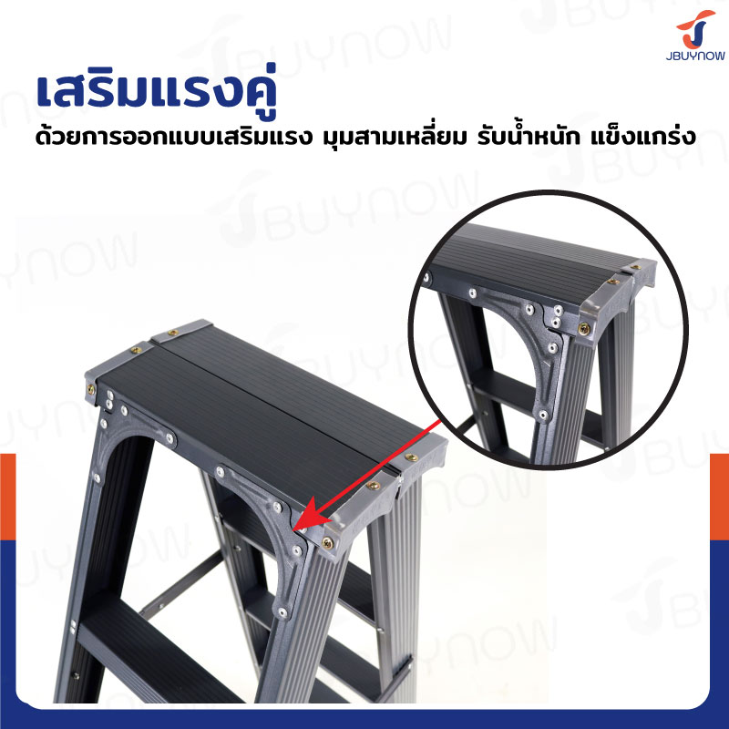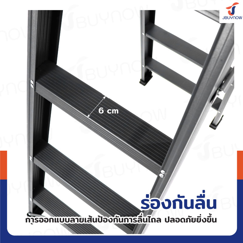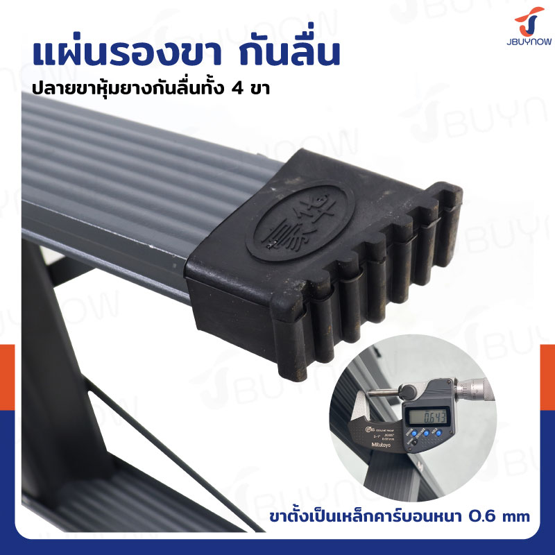 - มียางสวมขาบันไดกันลื่น ป้องกันพื้นเป็นรอย ทรงตัวได้อย่างมั่นคง สมดุล