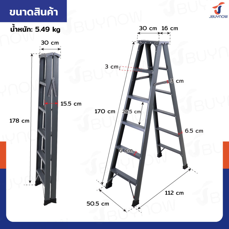 บันไดเหล็ก ขึ้น-ลง 2 ทาง (6 ขั้น สูง 1.8 เมตร)รับน้ำหนักได้ 200 kg เหล็กหนาซุปเปอร์เกรด JBUYNOW ZC-6