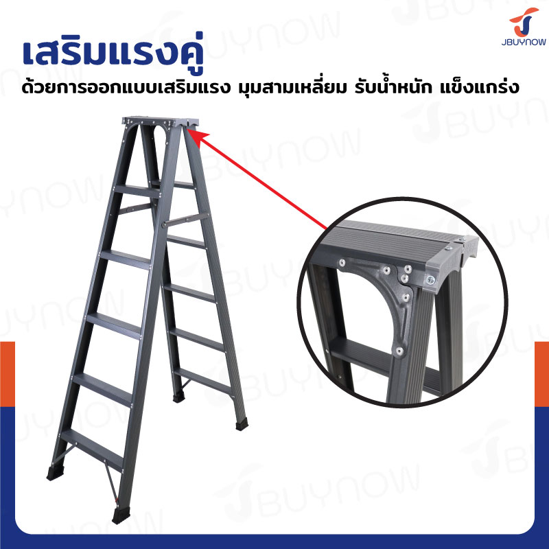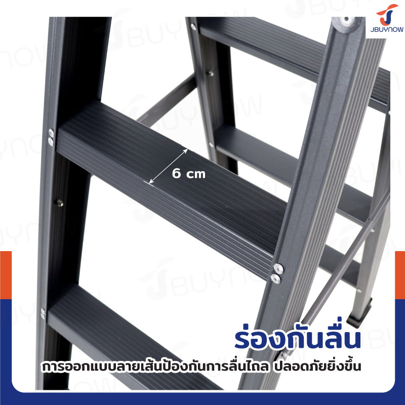 - มียางสวมขาบันไดกันลื่น ป้องกันพื้นเป็นรอย ทรงตัวได้อย่างมั่นคง สมดุล