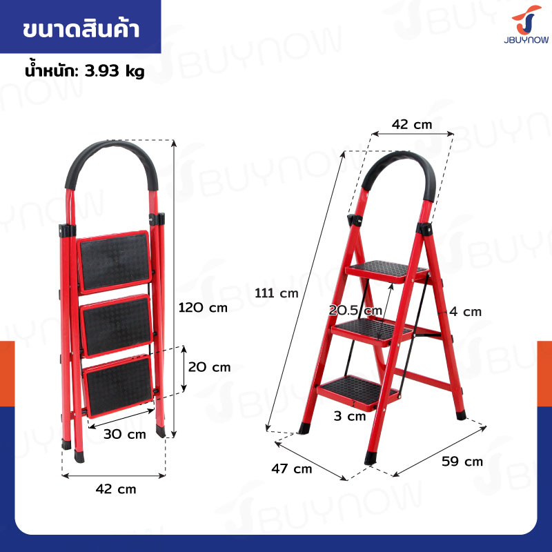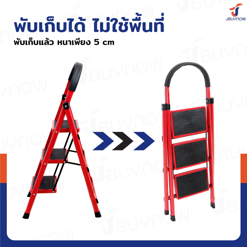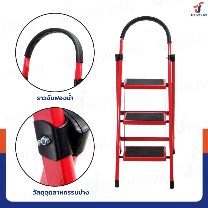 บันไดเหล็ก มีราวจับ (3 ขั้น สูง 1.2 เมตร) รับน้ำหนักได้ 150 KG สีแดง JBUYNOW DT-3