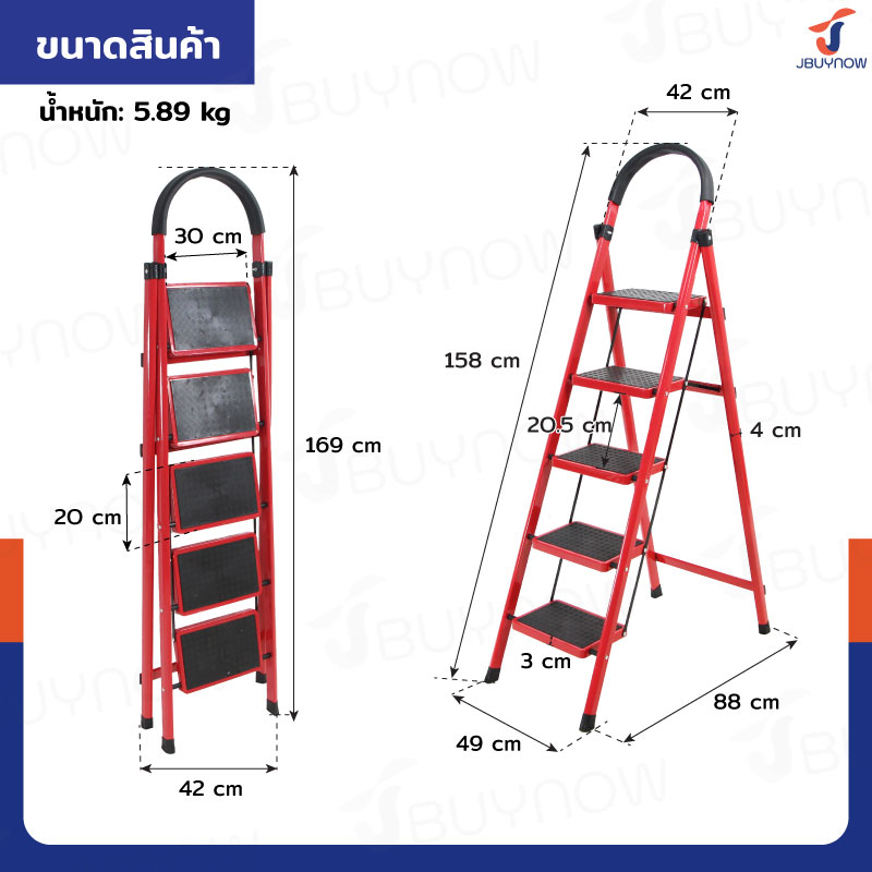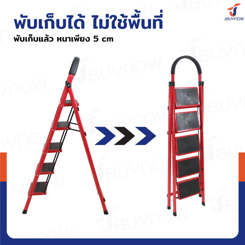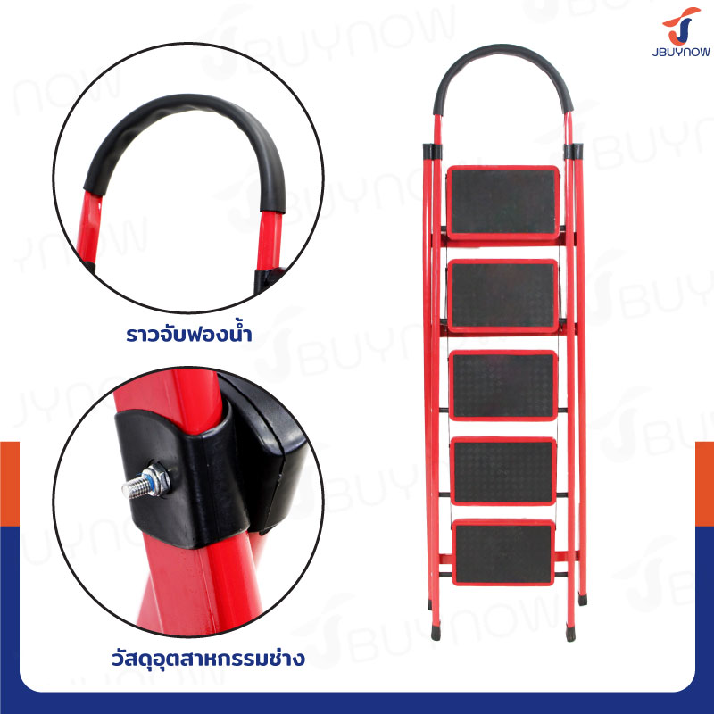 บันไดเหล็ก มีราวจับ (5 ขั้น สูง 1.5 เมตร) รับน้ำหนักได้ 150 KG สีแดง JBUYNOW DT-5