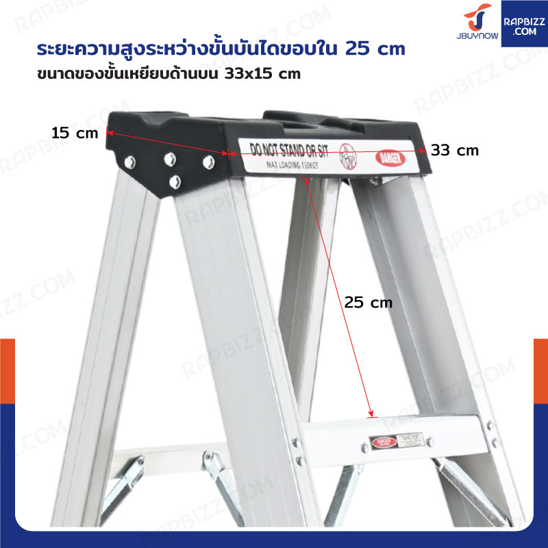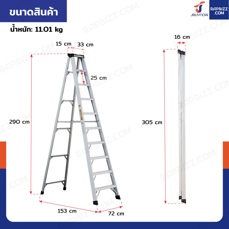 บันไดอลูมิเนียม 10 ขั้น 2.9 เมตร ทรงA ขึ้นลงทางเดียว มีที่วางอุปกรณ์ JBUYNOW ARD-30