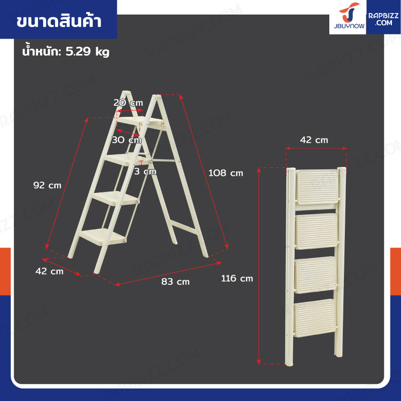 - ความสูงจากพื้นถึงขั้นบนสุด: 92 cm