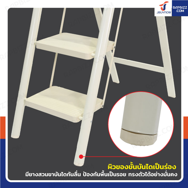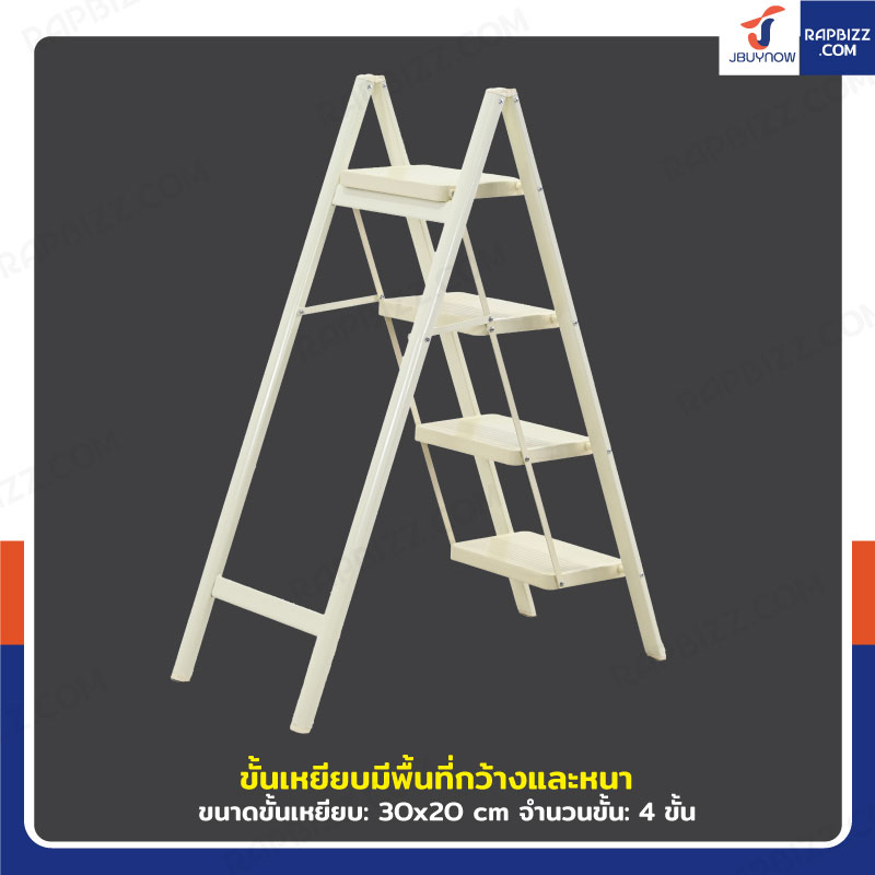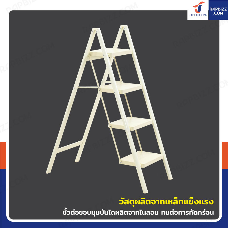 บันไดเหล็ก 4 ขั้น 1 เมตร แบบพกพา สไตล์มินิมอล สีครีม