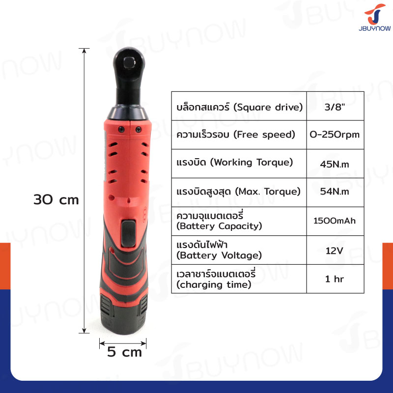 ประแจวงล้อไฟฟ้า 3/8 (3หุน) 12V 45-54N.m, 0-250rpm RB230731-18