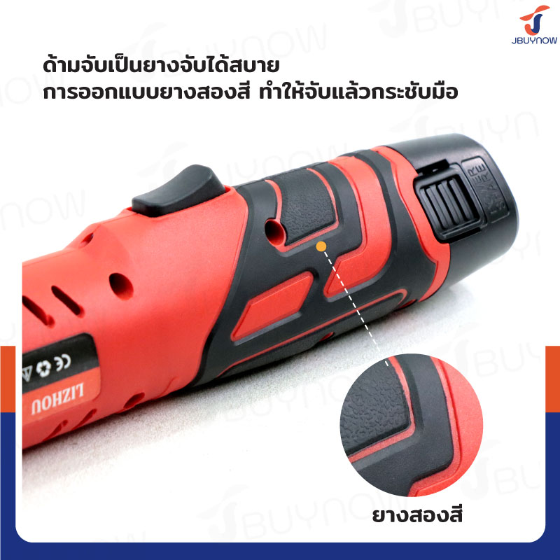 - ด้ามจับยางกันลื่น มีไฟแสดงสถานะแบตเตอรี่