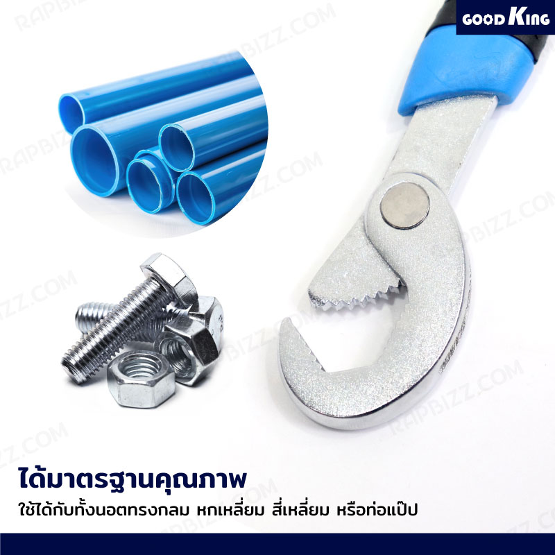 - งานช่างที่ไม่ต้องพกเครื่องมือหลายชิ้น ใช้งานสะดวก ได้ในชิ้นเดียว ใช้ขันหรือคลายน็อตได้ทุกขนาด ทุกรูปทรง ไม่ว่าจะเป็นน็อตทรงกลม ทรงหกเหลี่ยม ทรงสี่เหลี่ยม