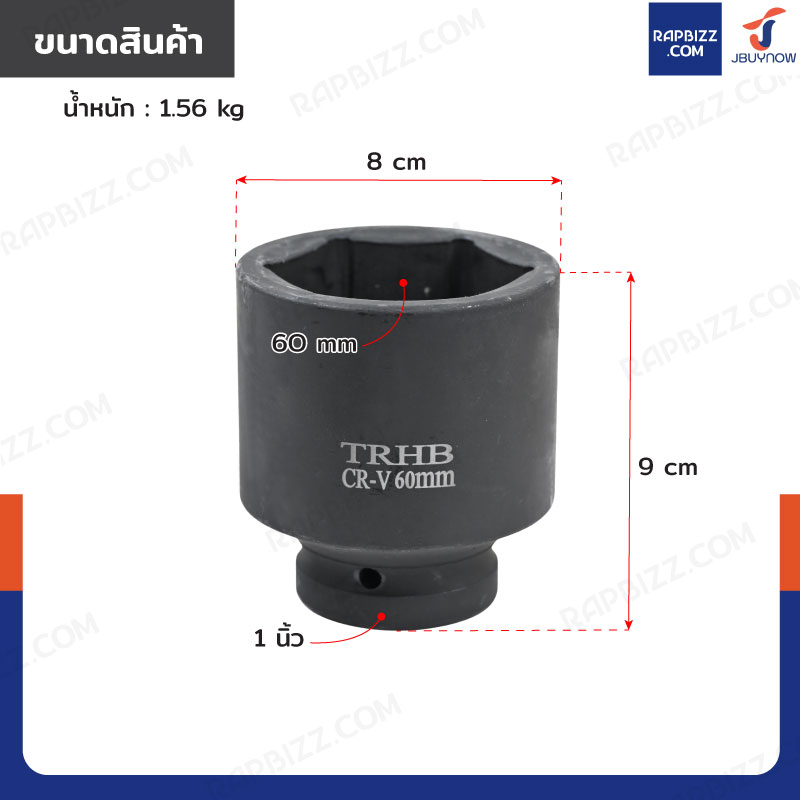 TRHB ลูกบล็อก 1 นิ้ว(8หุน) บล็อกลม เบอร์ 60 MM งานหนัก 1 ชิ้น เหล็ก สีดำ