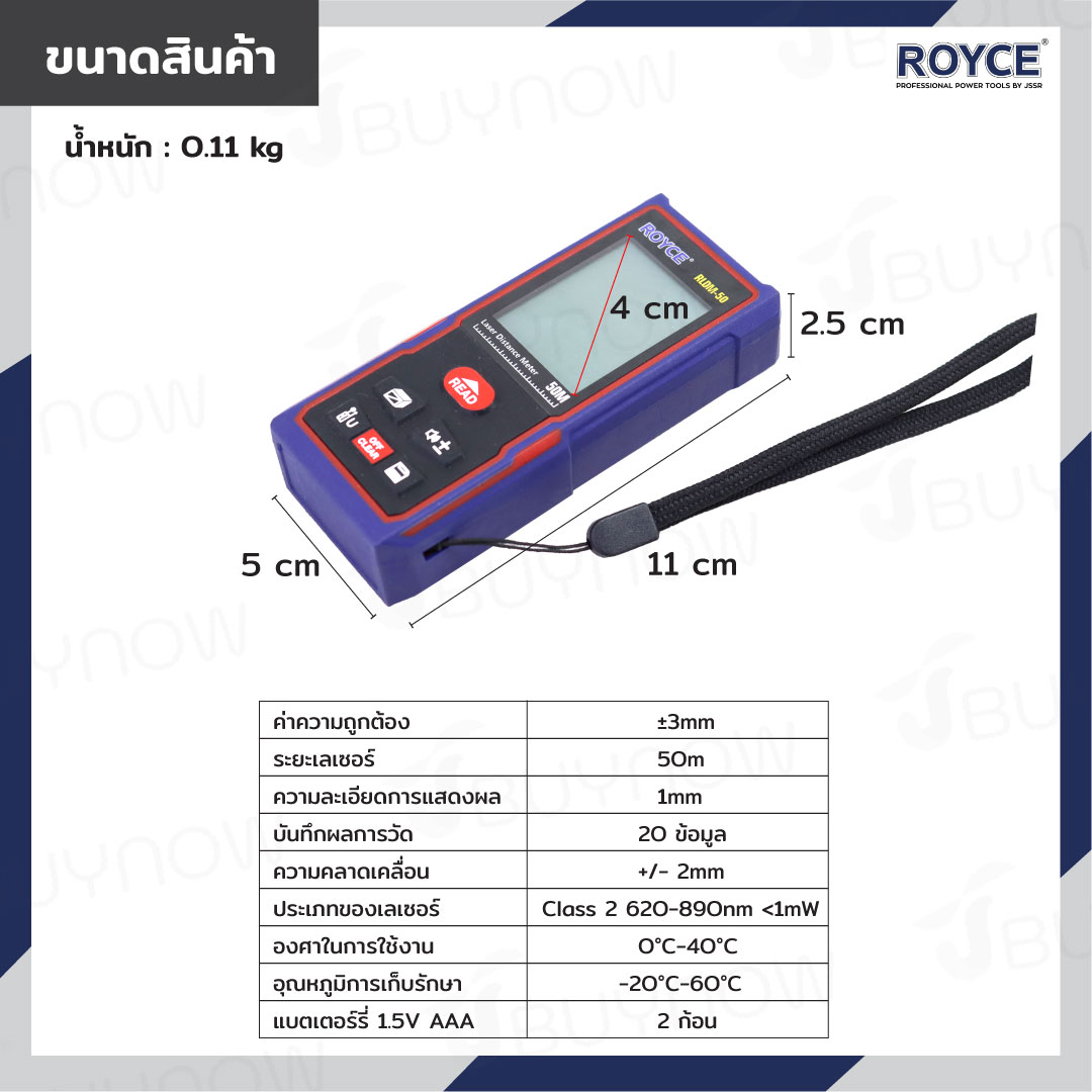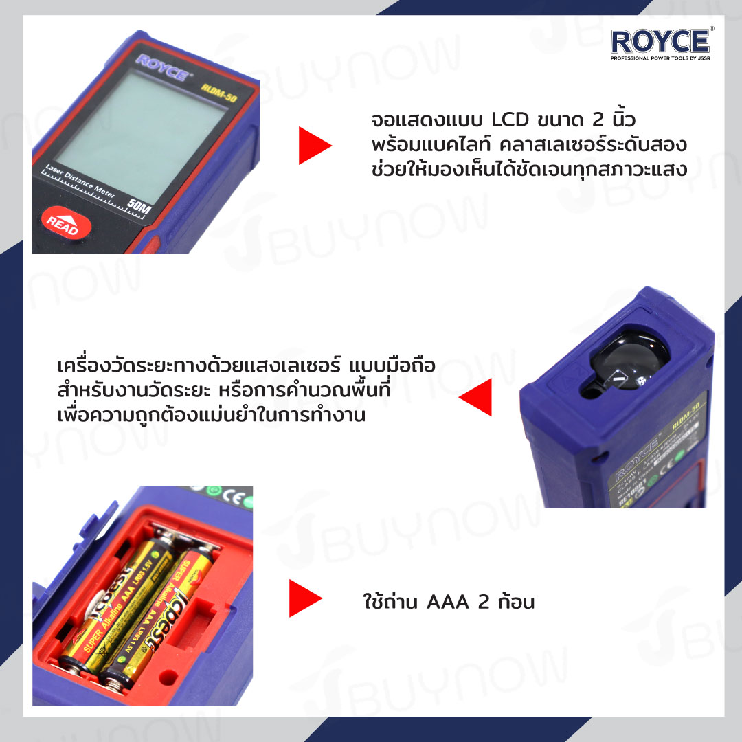 เครื่องวัดระยะทาง แบบดิจิตอล วัดระยะเลเซอร์ 50 เมตร ROYCE JBUYNOW RLDM-50