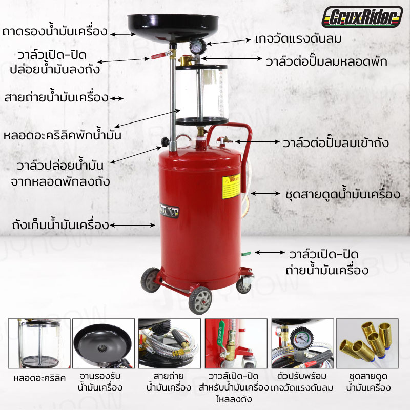 - ถาดรองถ่ายน้ำมันสามารถปรับความสูงได้ตามต้องการ