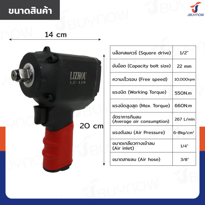 - ขนาดสายลม (Air hose): 3/8
