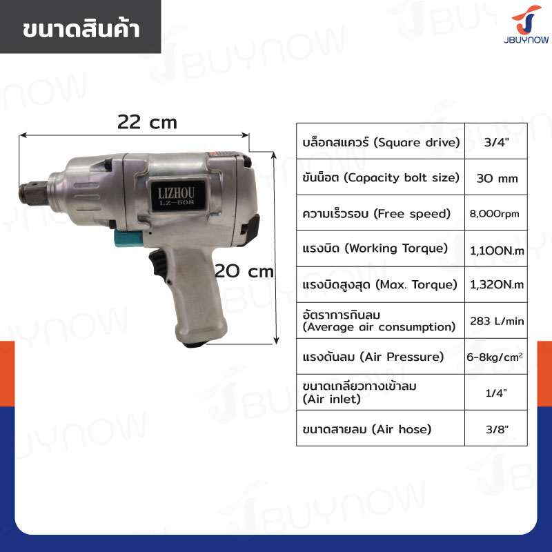 - ขนาดสายลม (Air hose): 3/8