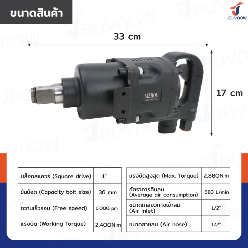 - เหมาะสำหรับใช้ในการซ่อมแซมยานยนต์ขนาดใหญ่ งานที่ต้องขันถอดน็อตเป็นประจำตามโรงงานอุตสาหกรรม ต่างๆ งามซ่อมแซมเครื่องจักรขนาดใหญ่