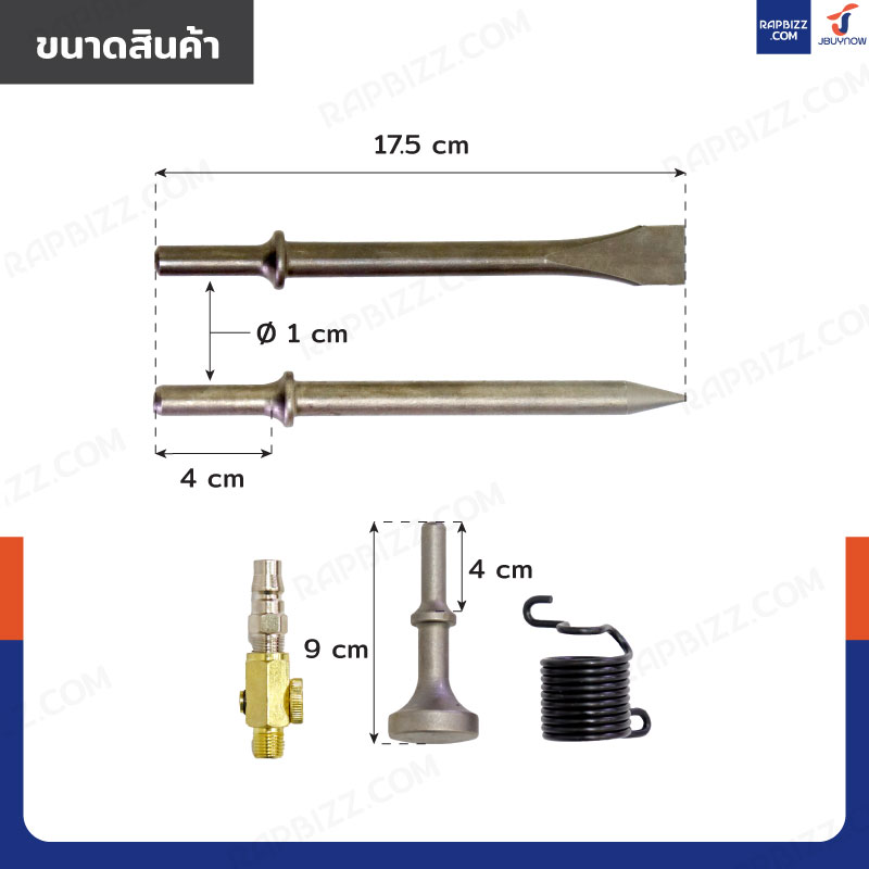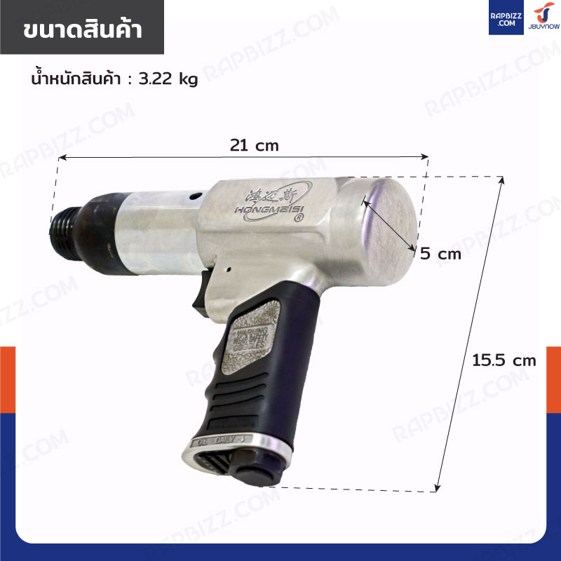 - ขนาดปืนสกัดลม(กว้างxยาวxสูง): 15.5x21x5 cm