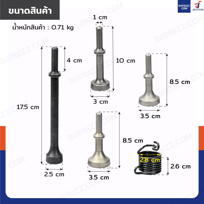 - ขนาดหัวค้อน หน้ากว้าง 2.5 cm แบบหัวมน ยาว 17.5 cm