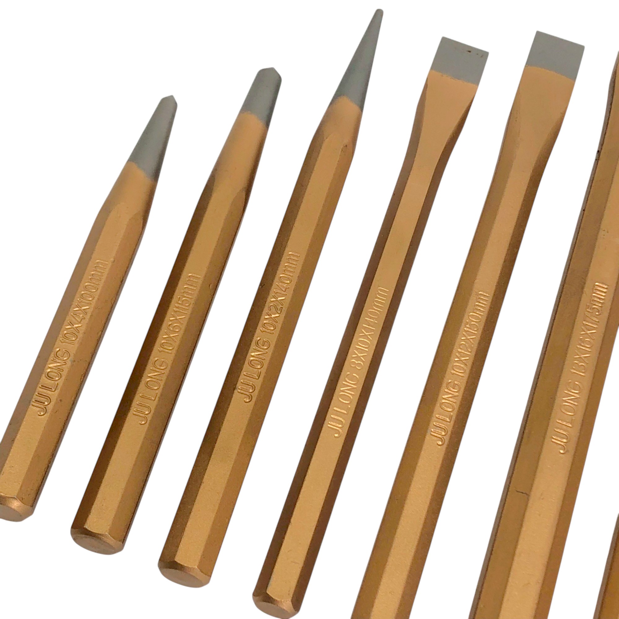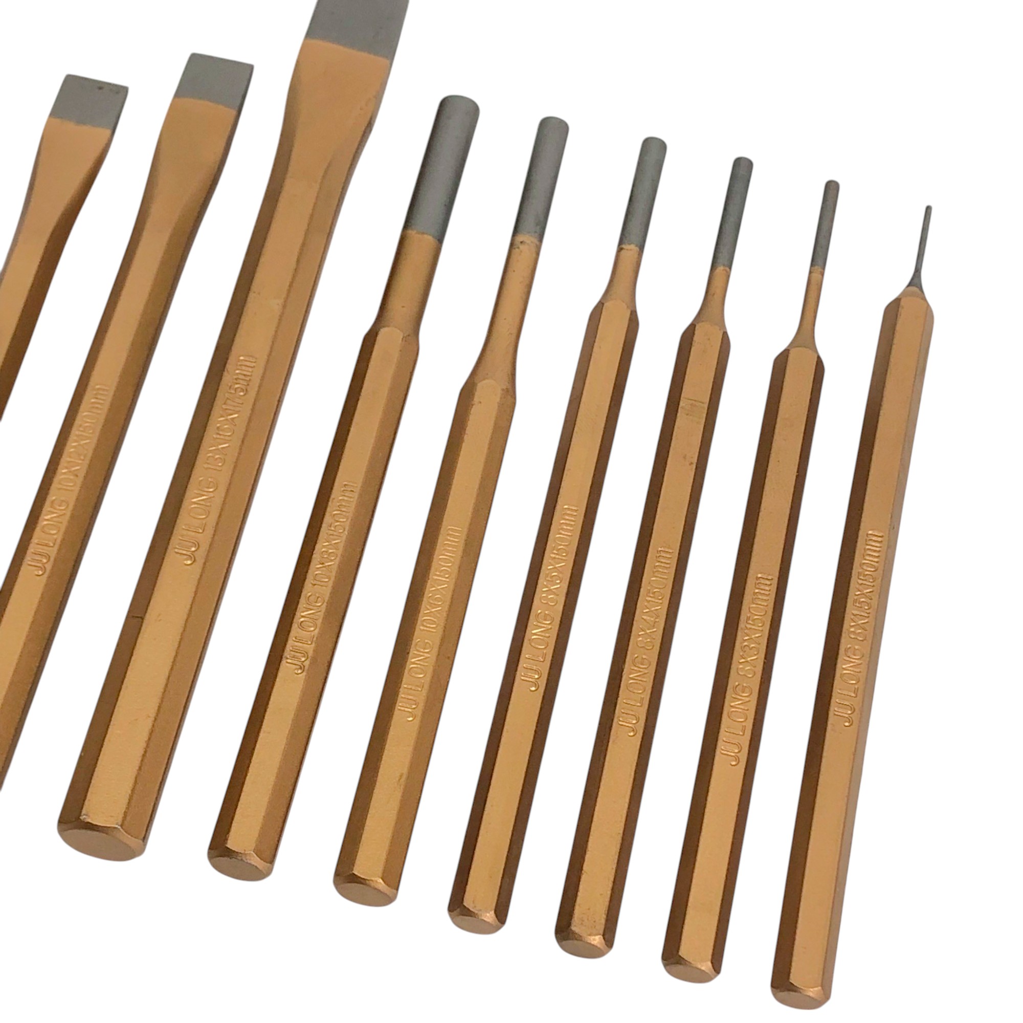 - เหล็กสกัดปากแบน จำนวน 3 ชิ้น 10x8x140 mm / 12x10x150 mm / 16x13x175 mm