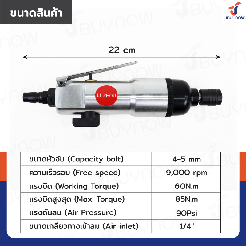 - ขนาดเกลียวทางเข้าลม (Air inlet): 1/4