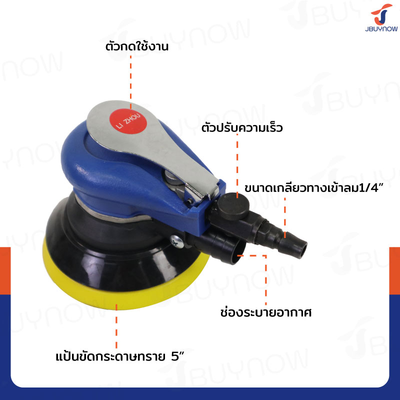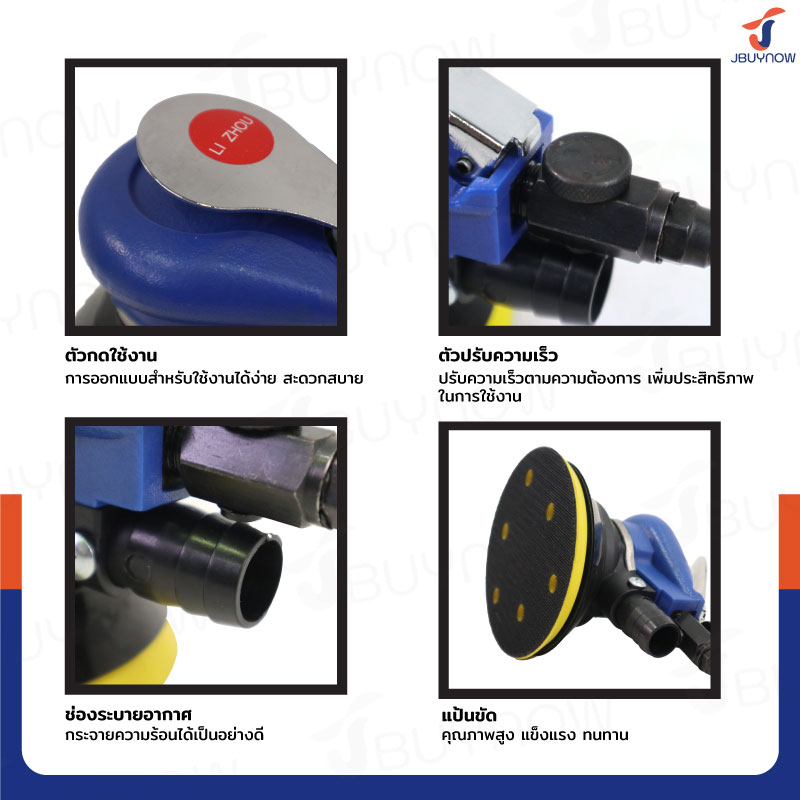 - ใช้กับแผ่นขัด ขนาด 5 นิ้ว (แบบมีรู)