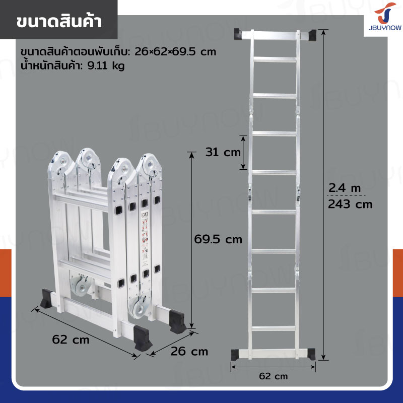บันไดพับได้ อลูมิเนียมแท้ทั้งตัว 8 ขั้น 2.4M SMJ4X2