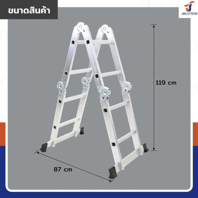 - โครงสร้างบันไดผลิตจากอะลูมิเนียมคุณภาพ มีความแข็งแรงทนทาน
