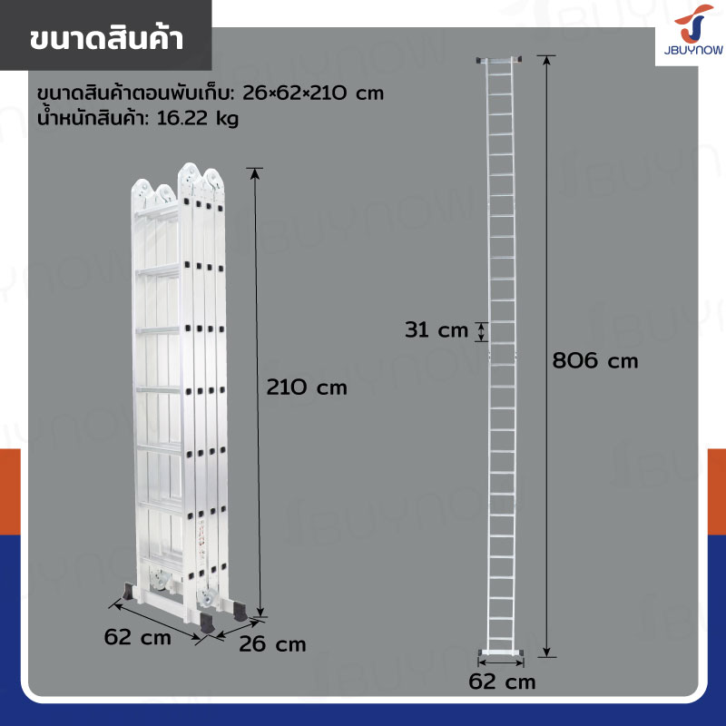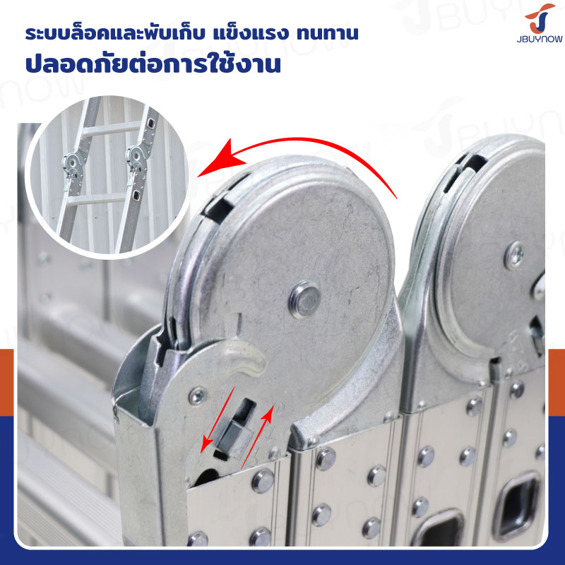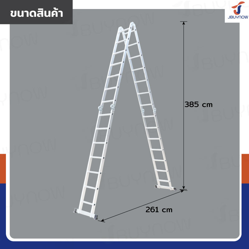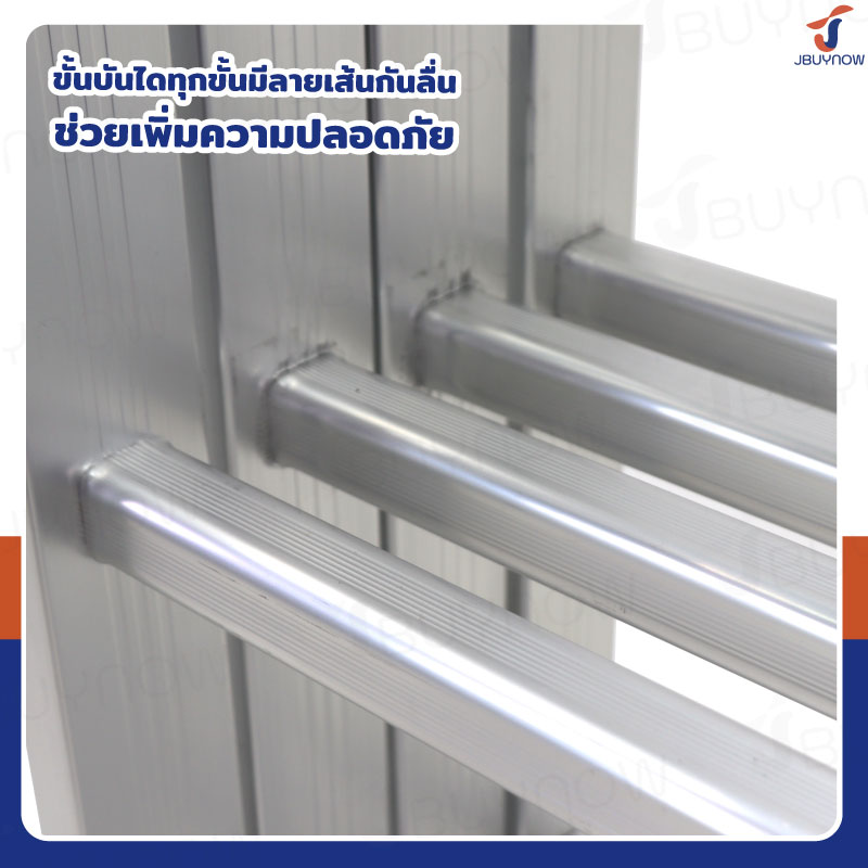 - โครงสร้างบันไดผลิตจากอะลูมิเนียมคุณภาพ มีความแข็งแรงทนทาน