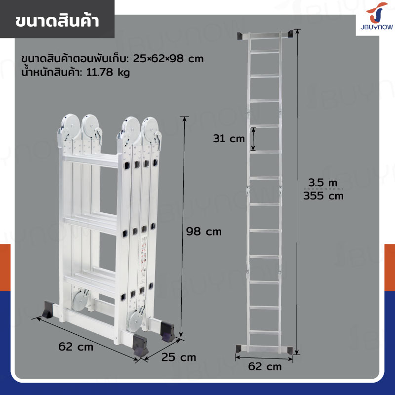 - ความยาวพาดตรง: 3.5m (355 cm)