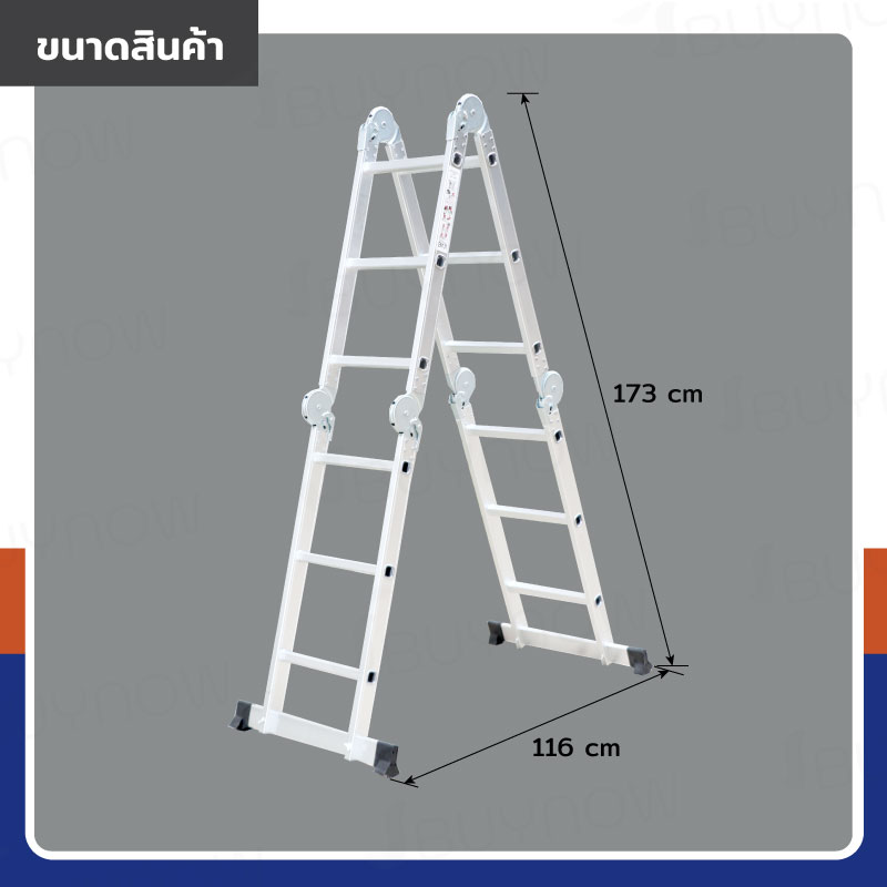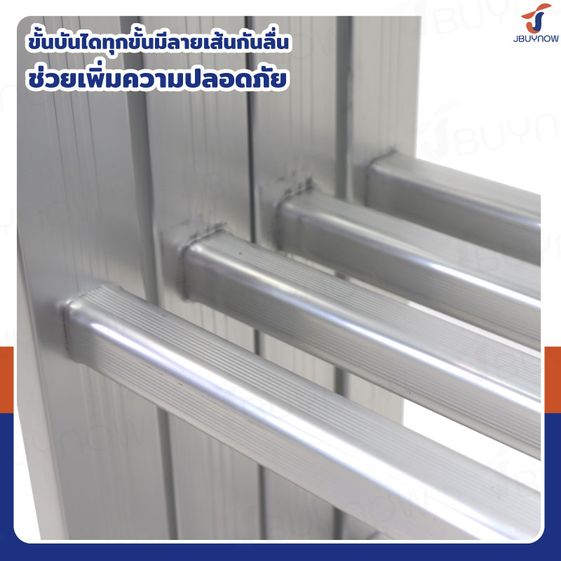 - โครงสร้างบันไดผลิตจากอะลูมิเนียมคุณภาพ มีความแข็งแรงทนทาน