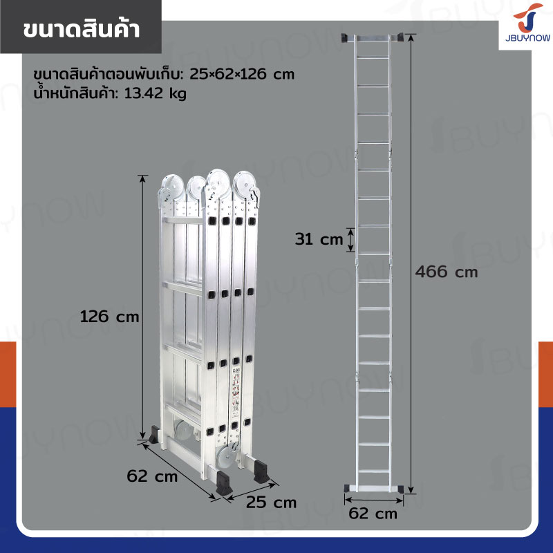 บันไดพับได้ อลูมิเนียมแท้ทั้งตัว 16 ขั้น 4.6M ข้อใหญ่ BGJ4X4