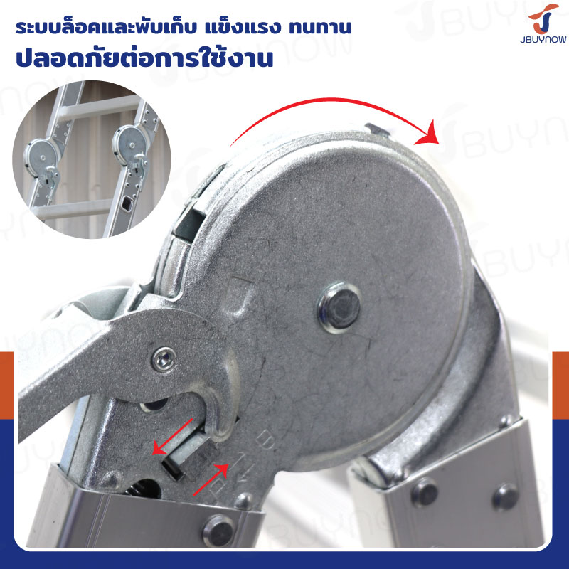 - โครงสร้างบันไดผลิตจากอะลูมิเนียมคุณภาพ มีความแข็งแรงทนทาน