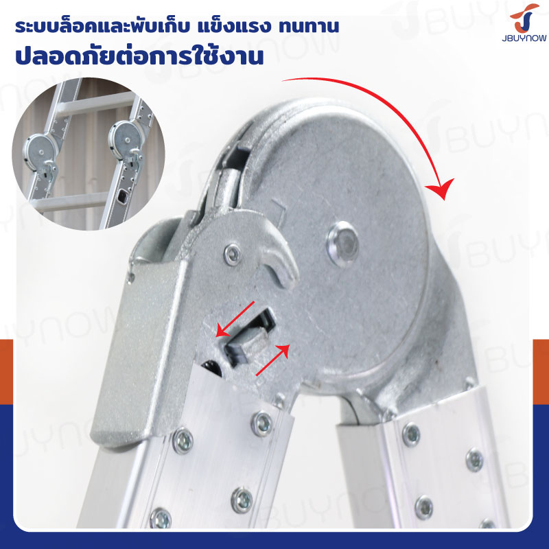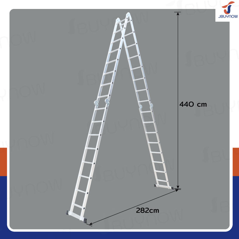 - โครงสร้างบันไดผลิตจากอะลูมิเนียมคุณภาพ มีความแข็งแรงทนทาน