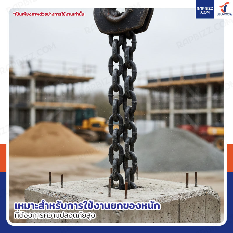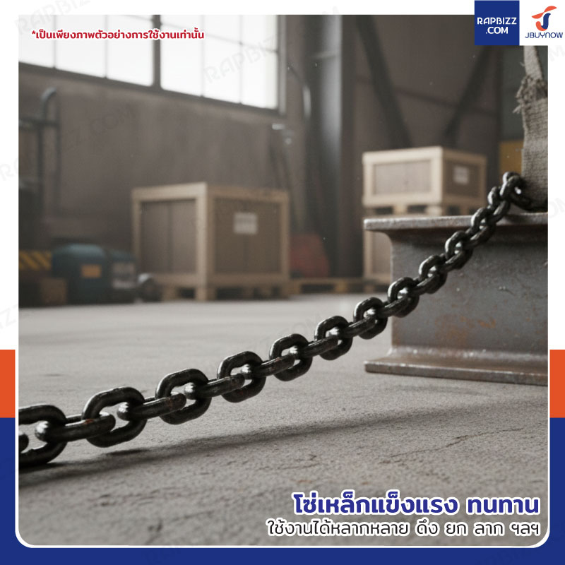 - เป็นโซ่เหล็กแข็งแรง ทนทาน ใช้งานได้หลากหลาย ดึง ยก ลาก ฯลฯ