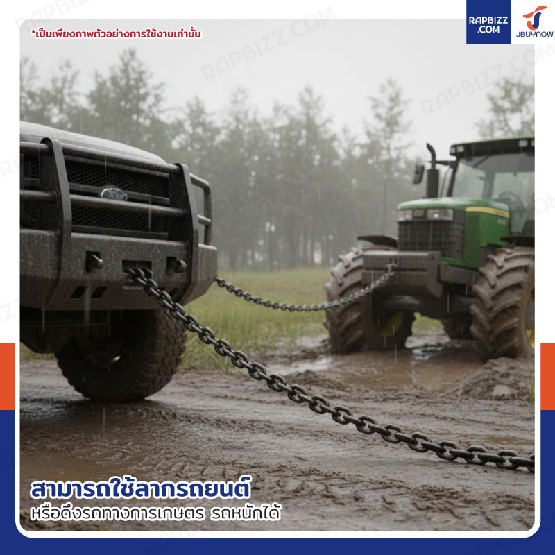 - เป็นโซ่เหล็กแข็งแรง ทนทาน ใช้งานได้หลากหลาย ดึง ยก ลาก ฯลฯ