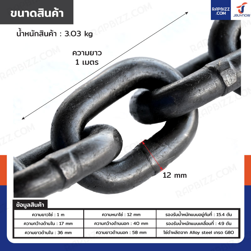 โซ่ดำ Alloy steel เกรด G80 12 MM โซ่งานหนัก (ตัดขายเป็นเมตร)