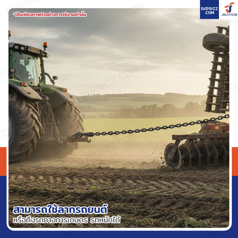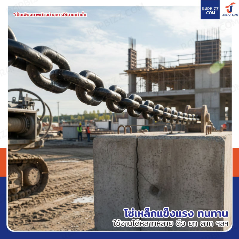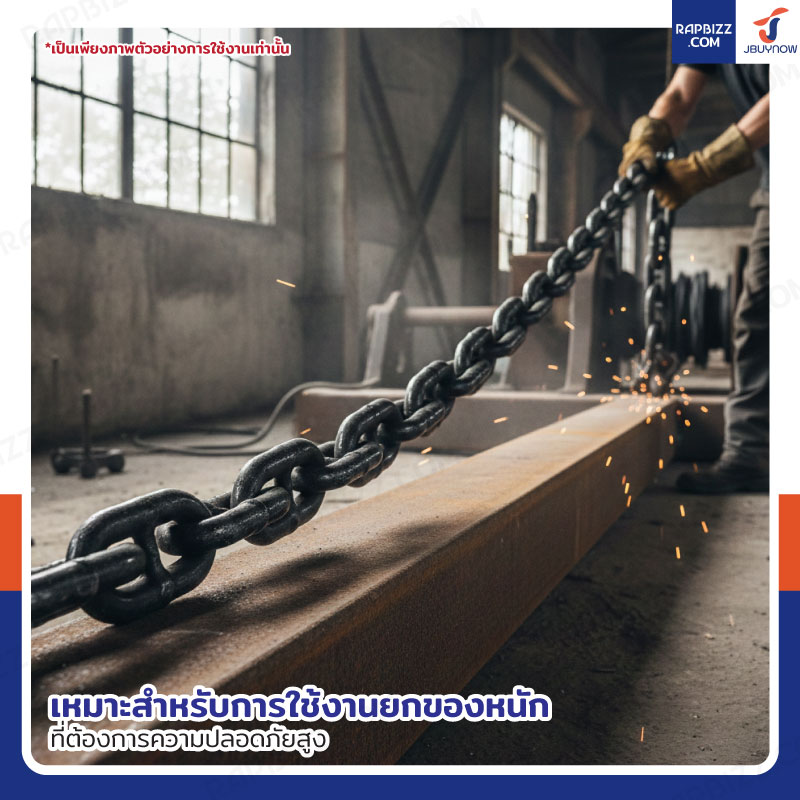 - เป็นโซ่เหล็กแข็งแรง ทนทาน ใช้งานได้หลากหลาย ดึง ยก ลาก ฯลฯ