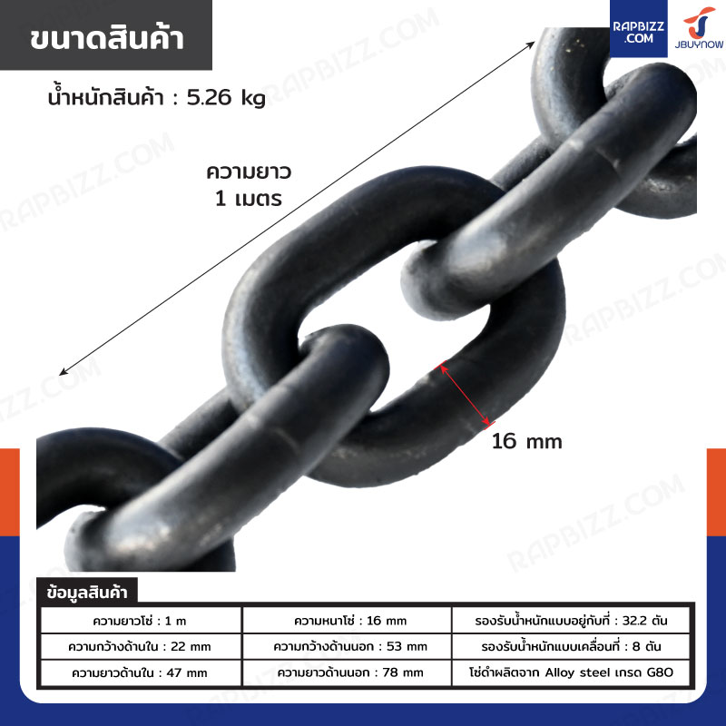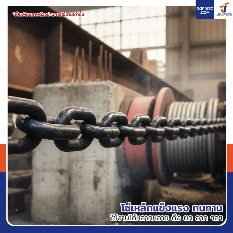 - เป็นโซ่เหล็กแข็งแรง ทนทาน ใช้งานได้หลากหลาย ดึง ยก ลาก ฯลฯ