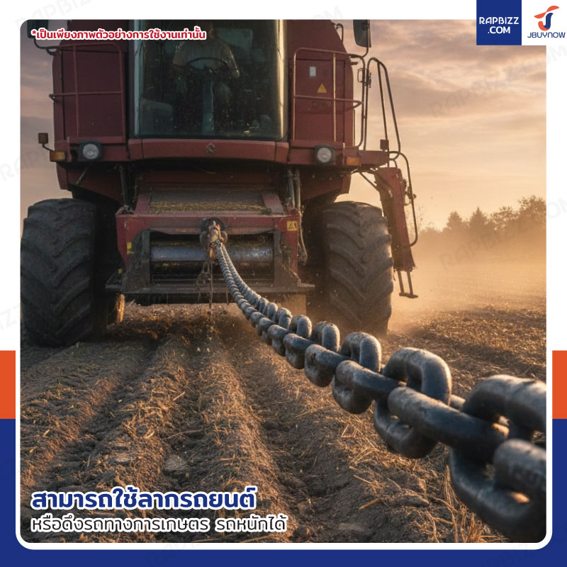 - เป็นโซ่เหล็กแข็งแรง ทนทาน ใช้งานได้หลากหลาย ดึง ยก ลาก ฯลฯ