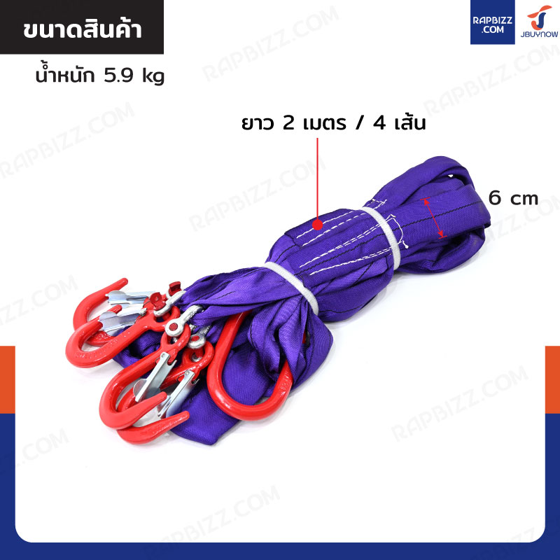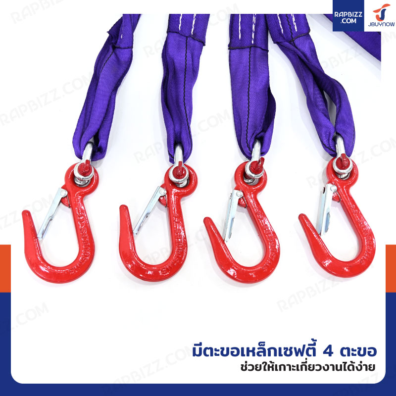 สลิงผ้าใบแบน รุ่น 4 ตะขอ รับน้ำหนักได้ 4 ตัน ยาว 2 เมตร