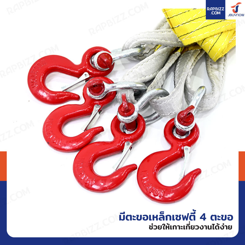 สลิงผ้าใบแบน รุ่น 4 ตะขอ รับน้ำหนักได้ 4 ตัน ยาว 2 เมตร