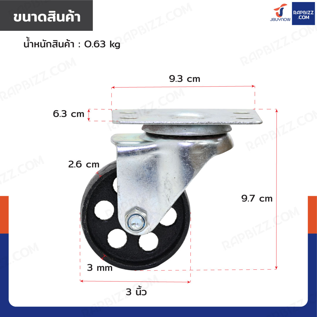 ล้อเหล็ก 3 นิ้ว หน้ากว้าง 2.6 cm สำหรับเครนยกของ รุ่น 2 ตัน