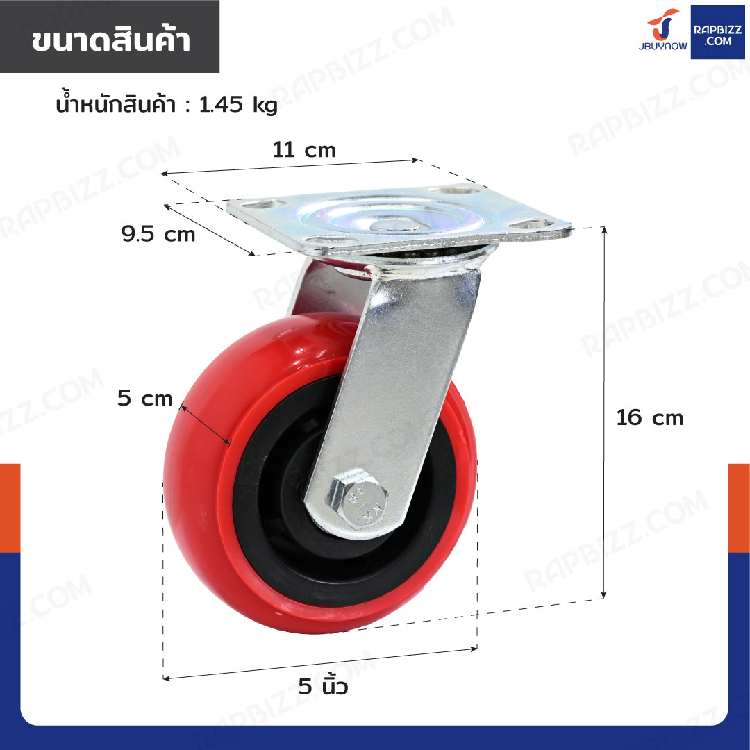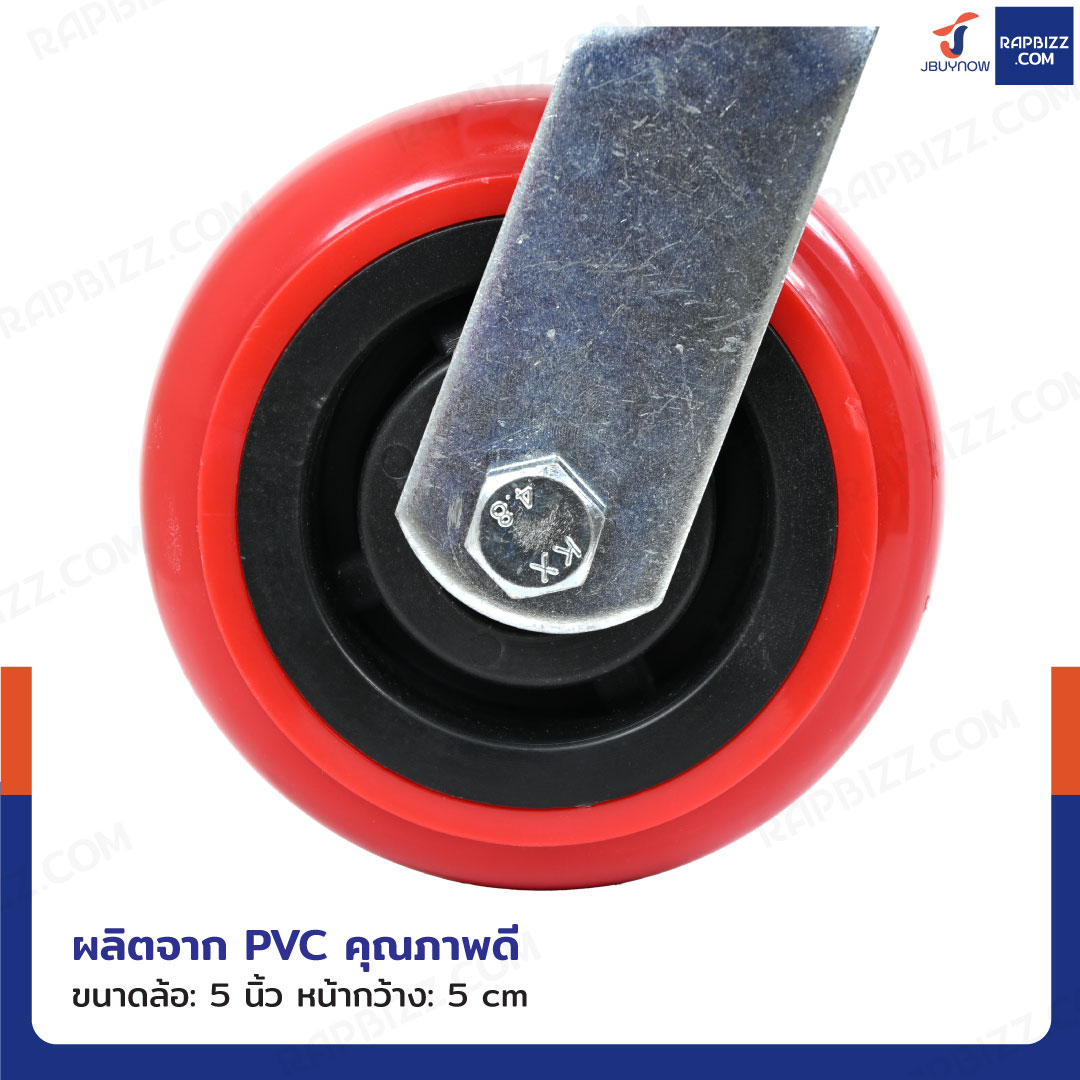 ล้อ PVC 5 นิ้ว ล้อเป็น สีแดง พร้อมชุดสกรูน็อต 4 ตัว/ชุด