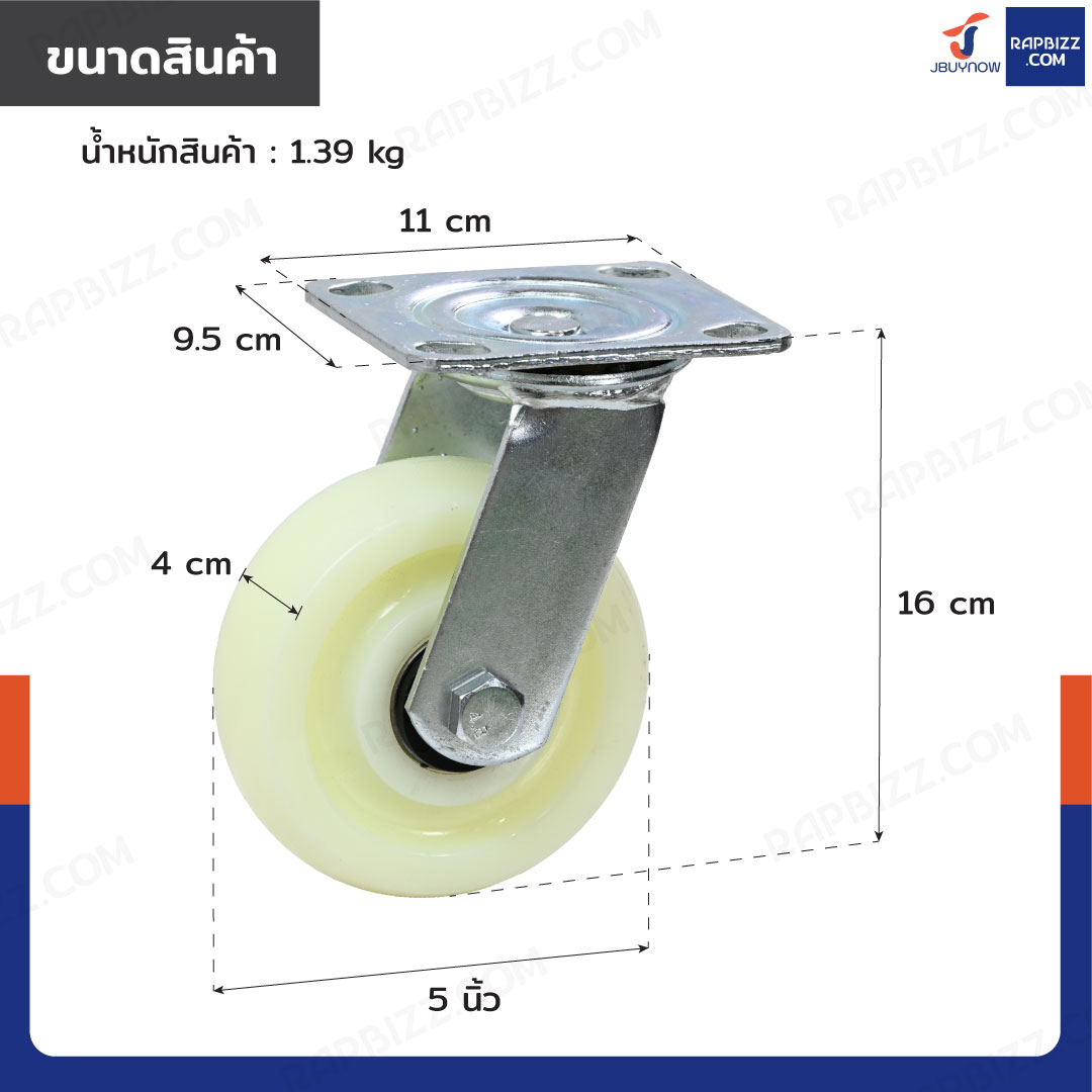 ล้อไนล่อน 5 นิ้ว ล้อเป็น พร้อมชุดสกรูน็อต 4 ตัว/ชุด