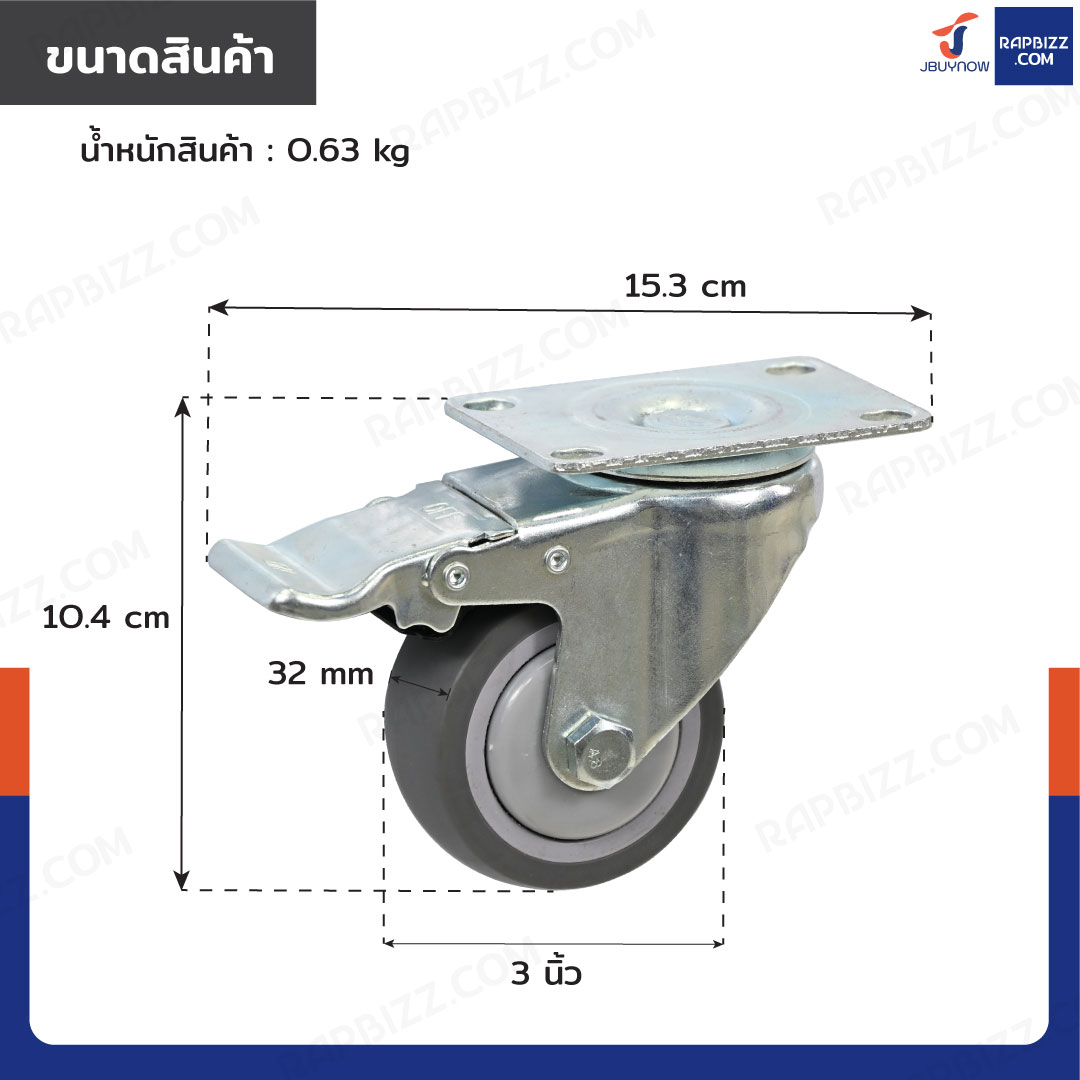 - ล้อ TPR ขนาด: 3 นิ้ว