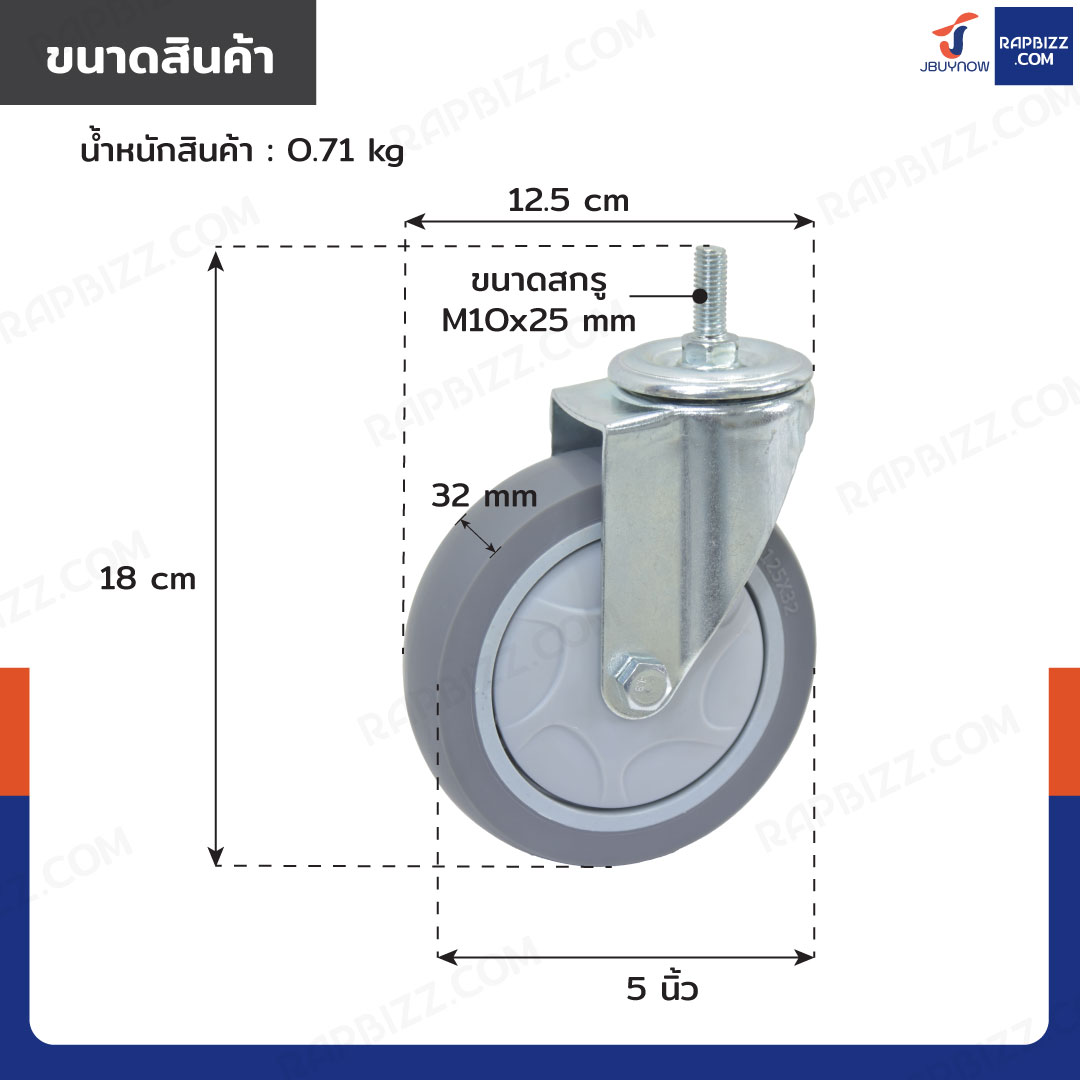 - ล้อ TPR ขนาด: 5 นิ้ว