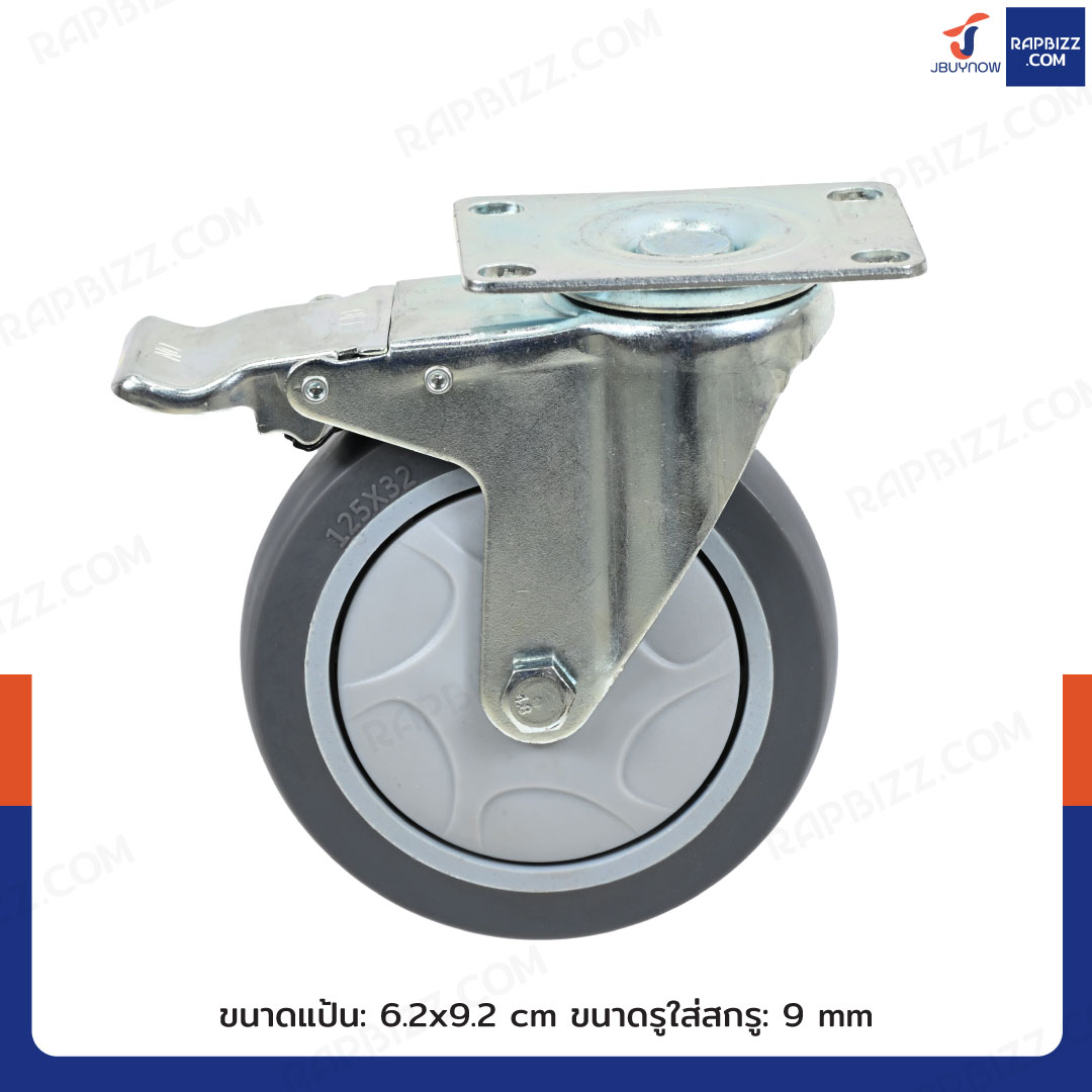 ล้อ TPR 5 นิ้ว แป้นเป็นมีเบรก(ล้อเงียบ)