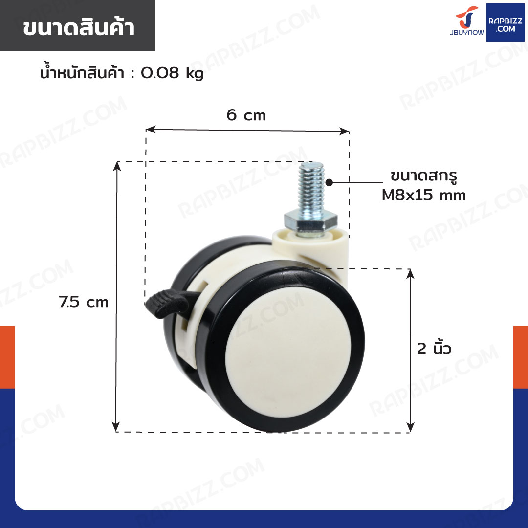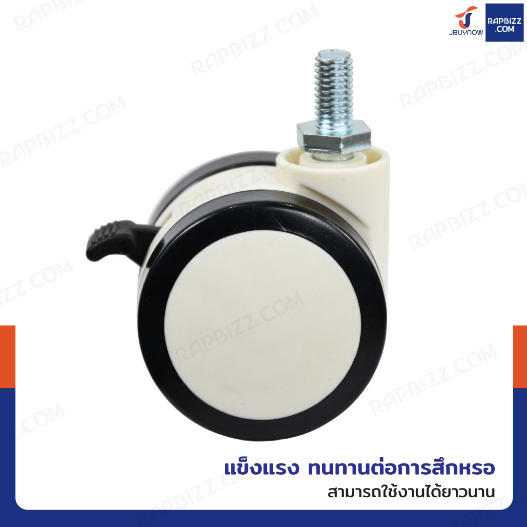 ล้อคู่ 2 นิ้ว สกรูมีเบรก ล้อเฟอร์นิเจอร์ M8x15 สีทูโทนดำ
