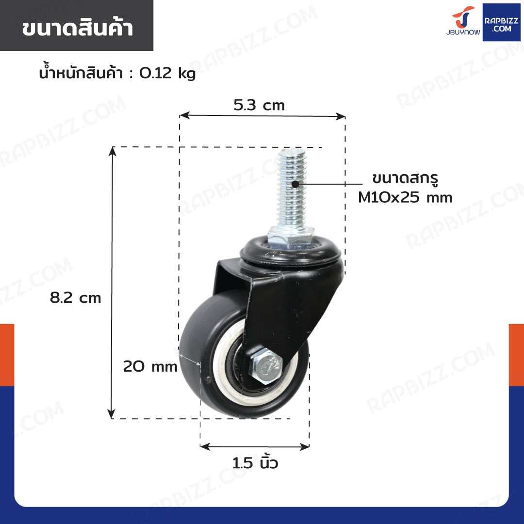 - ล้อ PU ขนาด: 1.5 นิ้ว
