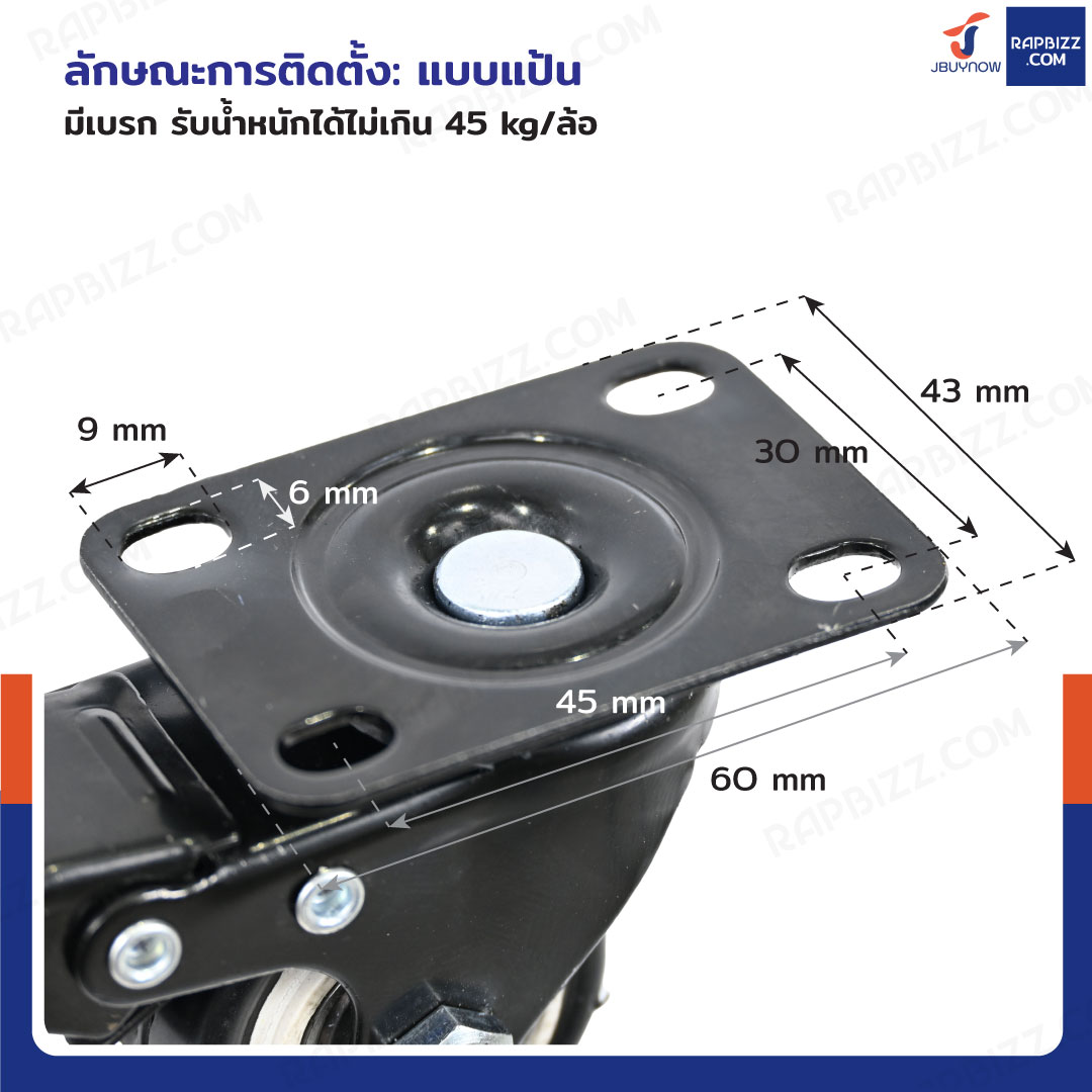 - ล้อ PU ขนาด: 1.5 นิ้ว